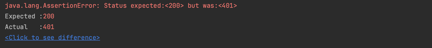 401에러 발생.. (java.lang.AssertionError: Status expected:<200> but was:<401>)