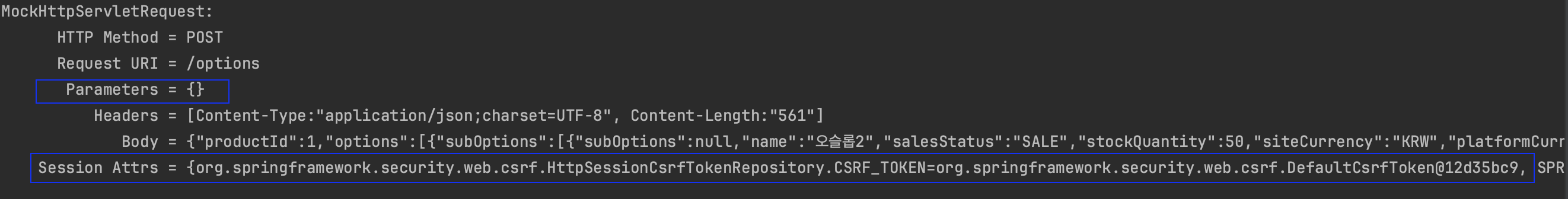 요청 시파라미터에 csrf 관련해서 토큰 값을 넣어서 보내주고 있다.