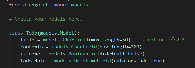 제일 쉬운 python manage.py startapp todos 해서 admin에 추가하는 것까지 하고