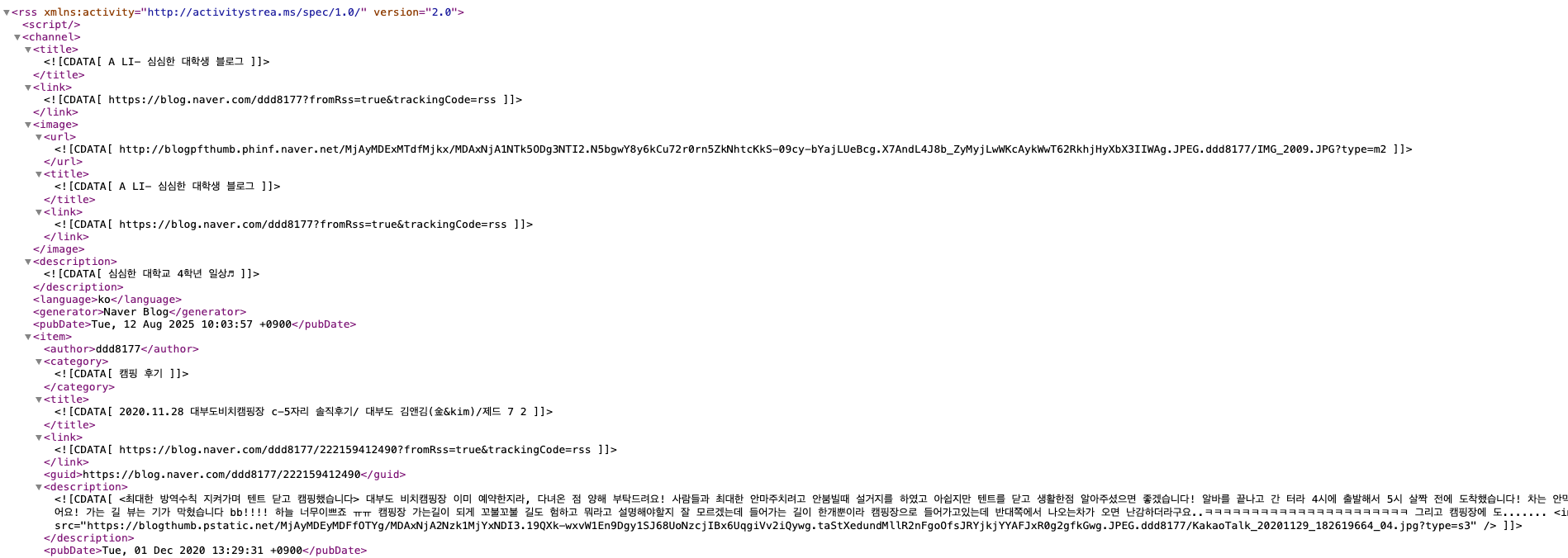 https://blog.rss.naver.com/ + 아이디.xml 을 해주면 준비 끝이다... ㅋㅋㅋ